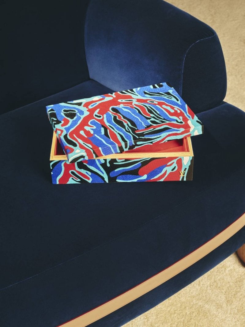 The presentation follows the centenary of the International Exhibition of Decorative and Modern Industrial Arts, where the House first showcased its innovative design vision. A key highlight is the Pierre Legrain Hommage collection, honoring French decorator Pierre Legrain, who collaborated with the brand in the 1920s. Among the pieces is a reissue of the House’s first furniture design: a red-and-black dressing table originally commissioned by Gaston-Louis Vuitton in 1921. The collection also includes archival-inspired creations alongside contemporary works by Estudio Campana, Raw Edges, and designer Franck Genser.