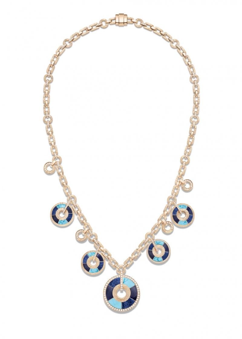 Piaget introduces a bold new chapter in its design legacy with “Possession Vibrant Palace”, a collection that infuses its iconic rotating creations with the richness of ornamental stones. Turquoise, sodalite and dumortierite take center stage, casting a spectrum of luminous blues that redefine the Maison’s longstanding dialogue with color.