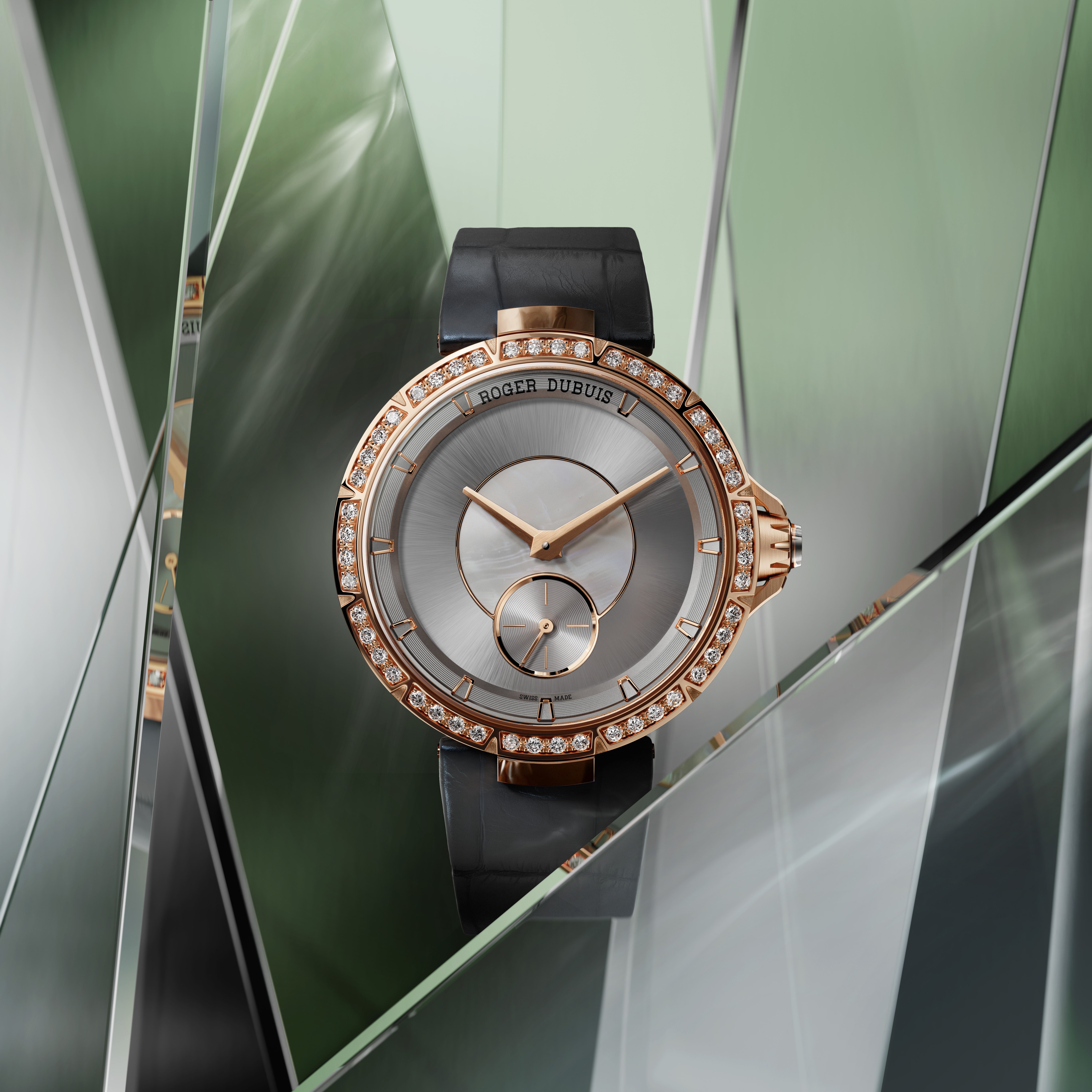 Moving to Roger Dubuis, the Excalibur Lady of the Lake watch inspired by Arthurian legend, pays tribute to Vivian, the mystical guardian of Excalibur, blending storytelling with fine watchmaking. Encased in 36mm rose gold set with diamonds and powered by the refined RD830 automatic calibre, it unites jewel-like elegance with technical precision.