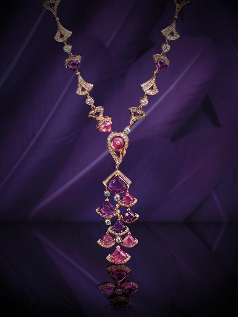That’s quite a smart way to make you fall in love even more with these new vibrant jewels. While autumn is a season that makes every earthy tone look magnificent, Bulgari’s new collection comes to remind you of the beauty that lies at the heart of a breezy color combination, one that brings together the sparkle of diamonds, the purity of aquamarine, the joyful spirit of pink tourmaline, the sensuality of rubelite, the balance of amethyst, the power of lapis and the warmth of carnelian.