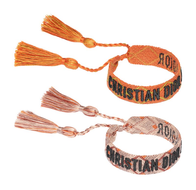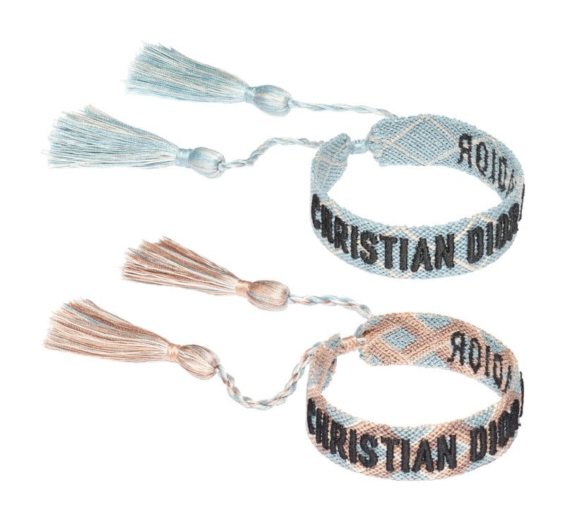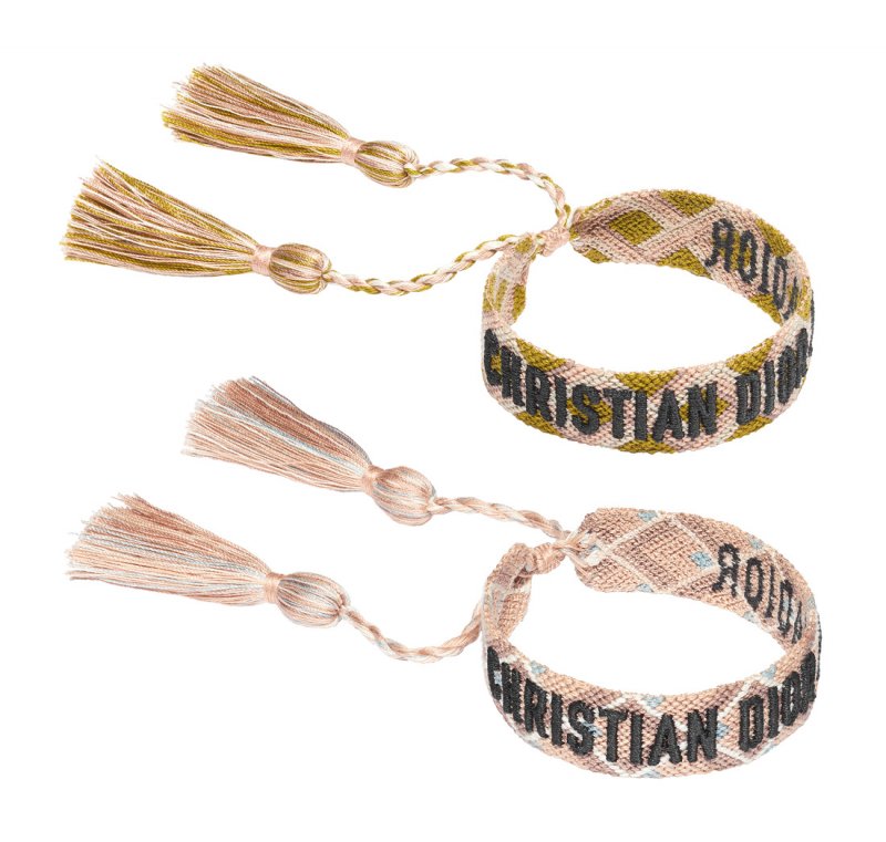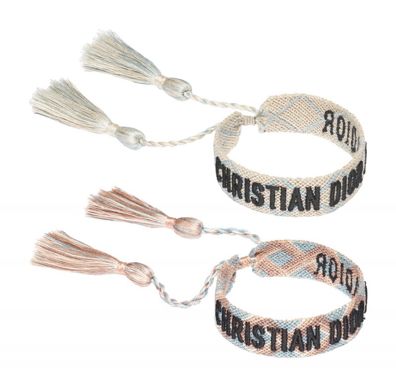 Inspired by the intricate craftsmanship of Amerindians, the multicolored bracelets transport their wearers back in time and are easily worn in multiples around the wrist. Look closely and you’ll instantly notice the strong statement they bestow upon its beholder; think four different colors mixes ranging from pink to blue tones. Think true expertise enhanced with a sophisticated black thread and a dreamy inscription that reads “Christian Dior J’Adior”. Attention to detail and exquisite craftsmanship? Absolutely!
