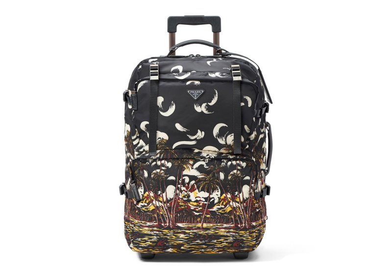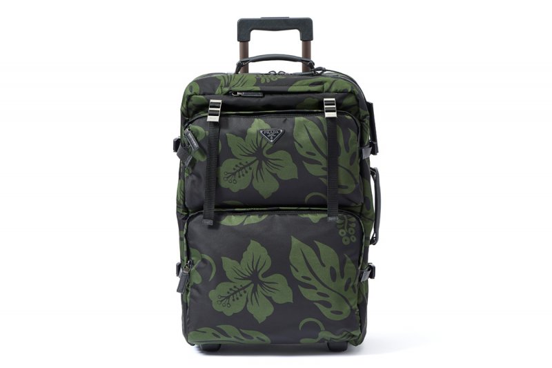Boasting a fresh approach to the luxury sector, the newly designed trolleys come in the international “cabin baggage” format, perfect for travelling by plane. The first trolley features a four-wheeled model, a melting pot of two fundamental materials for the brand, Saffiano leather and gabardine, with black metal details. The second one showcases two wheels and reflects the design and aesthetic details of the iconic Prada rucksack, alongside a soft body, expandable storage space and internal compartments for both leisure and business travel. The two outstanding styles put into sight a unique high-tech ‘bag tracker’ feature, which is a device that uses a new app to connect the item with the owner’s smartphone. The phone’s Bluetooth technology records the position of the luggage within a 40-metre radius, hence alerting the user when it leaves or re-enters this area. Indeed, the avant-gardist system locates the bag and serves as an antitheft device as well. As a user, you will also be able to check that the trolley is travelling on the same airplane or vehicle as you.