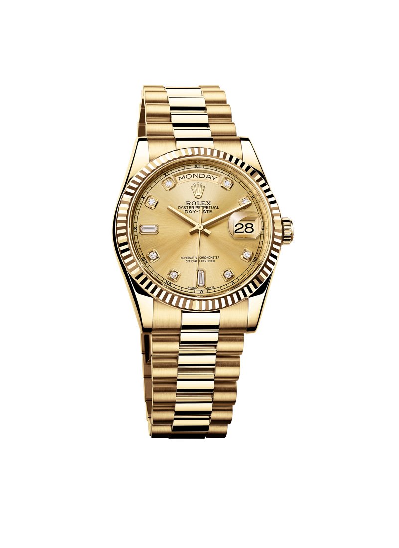 Yellow gold timepieces are quite a nice way to pack this desired statement. Of course, we’re talking about ones that are completely made of yellow gold – including their case, bracelet and clasp. You might find that the texture of the gold differs from one watch to another, but it’s all due to the technique used in creating it. Would you prefer a shiny or mattified appearance? It might be hard to choose but you will surely find one that perfectly goes with your taste.