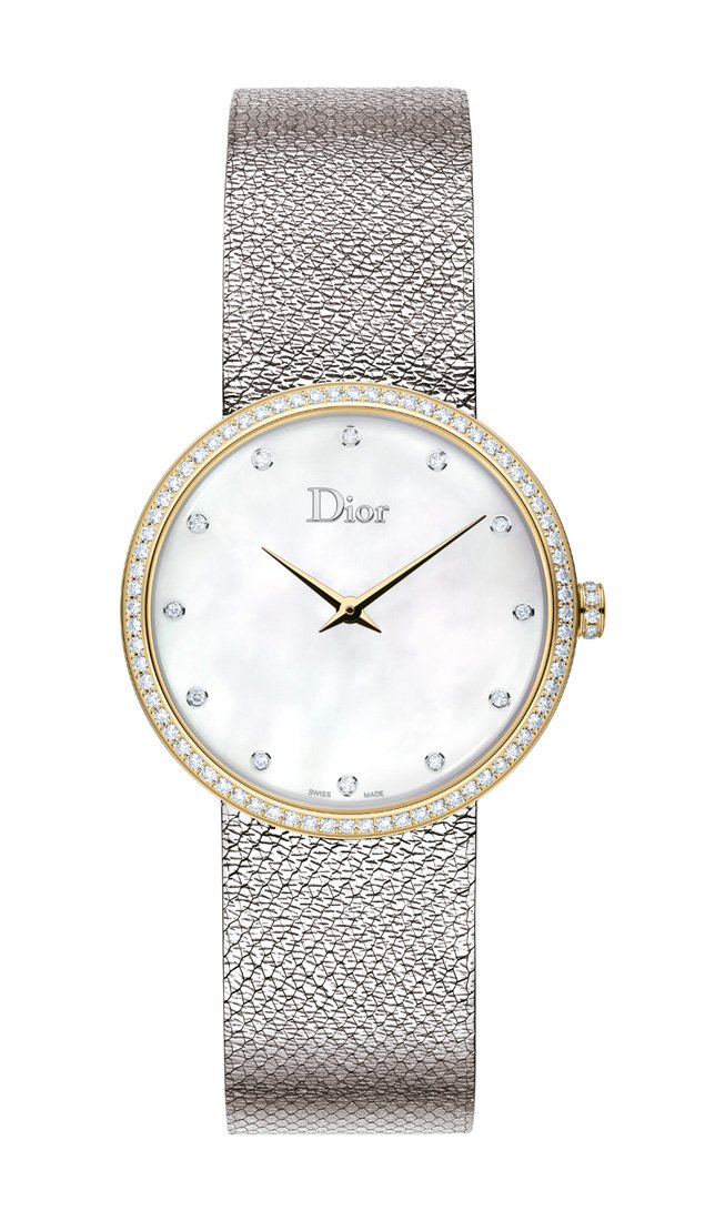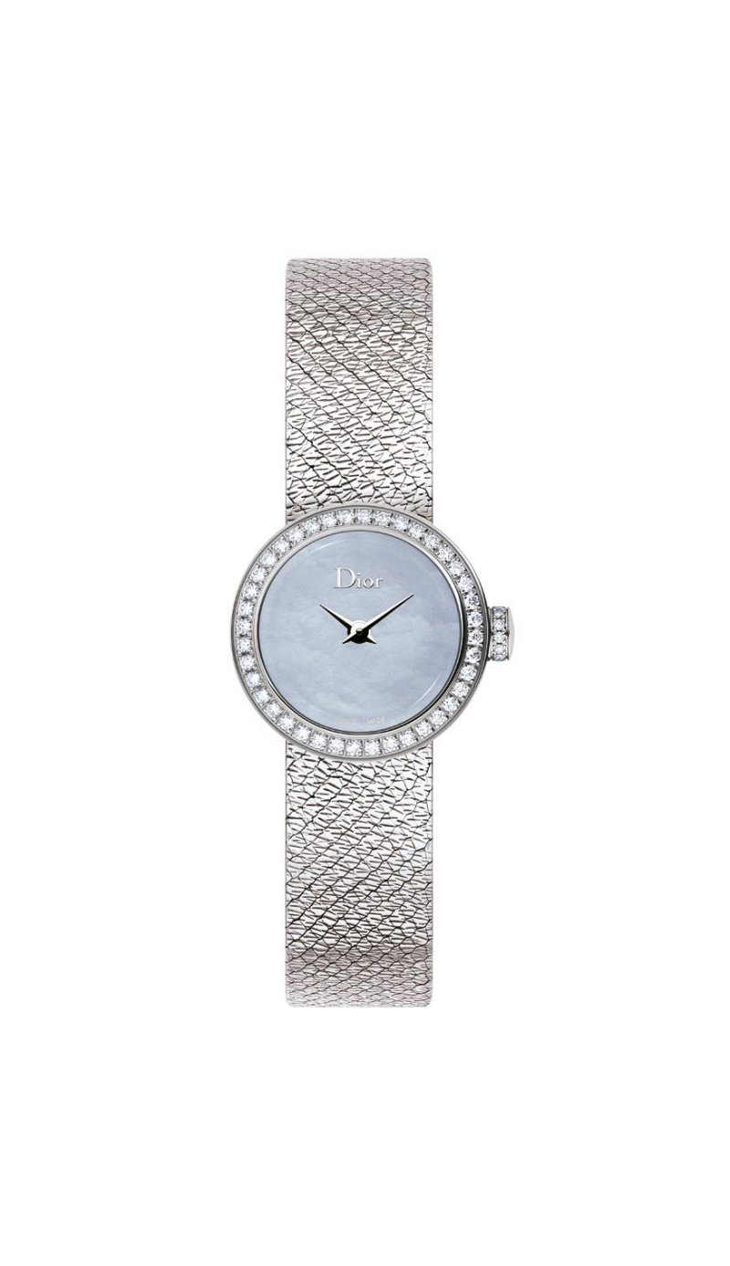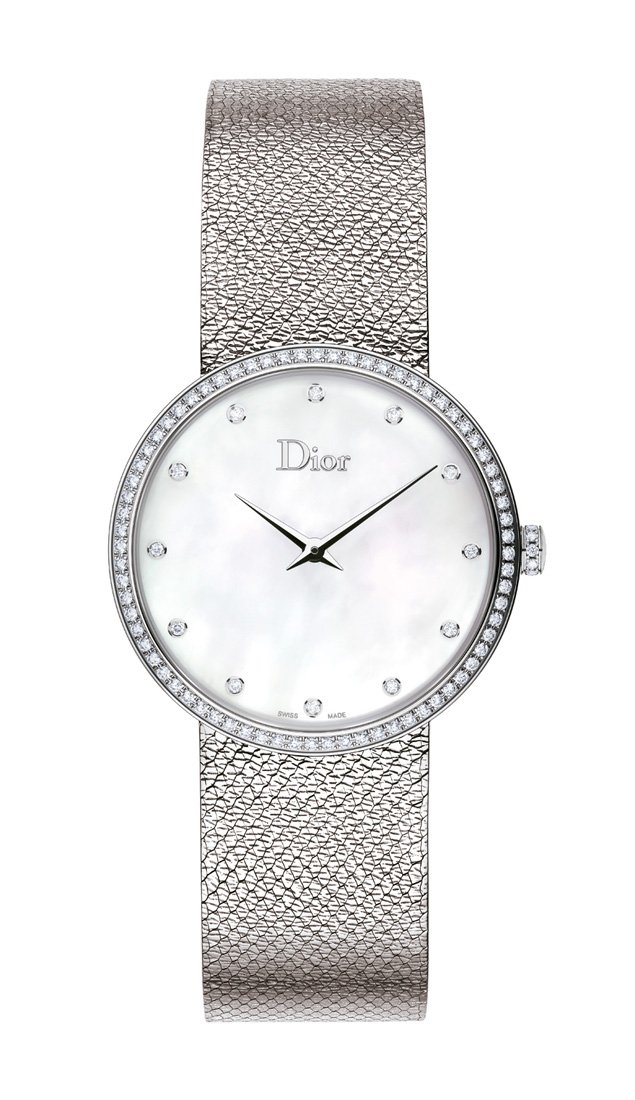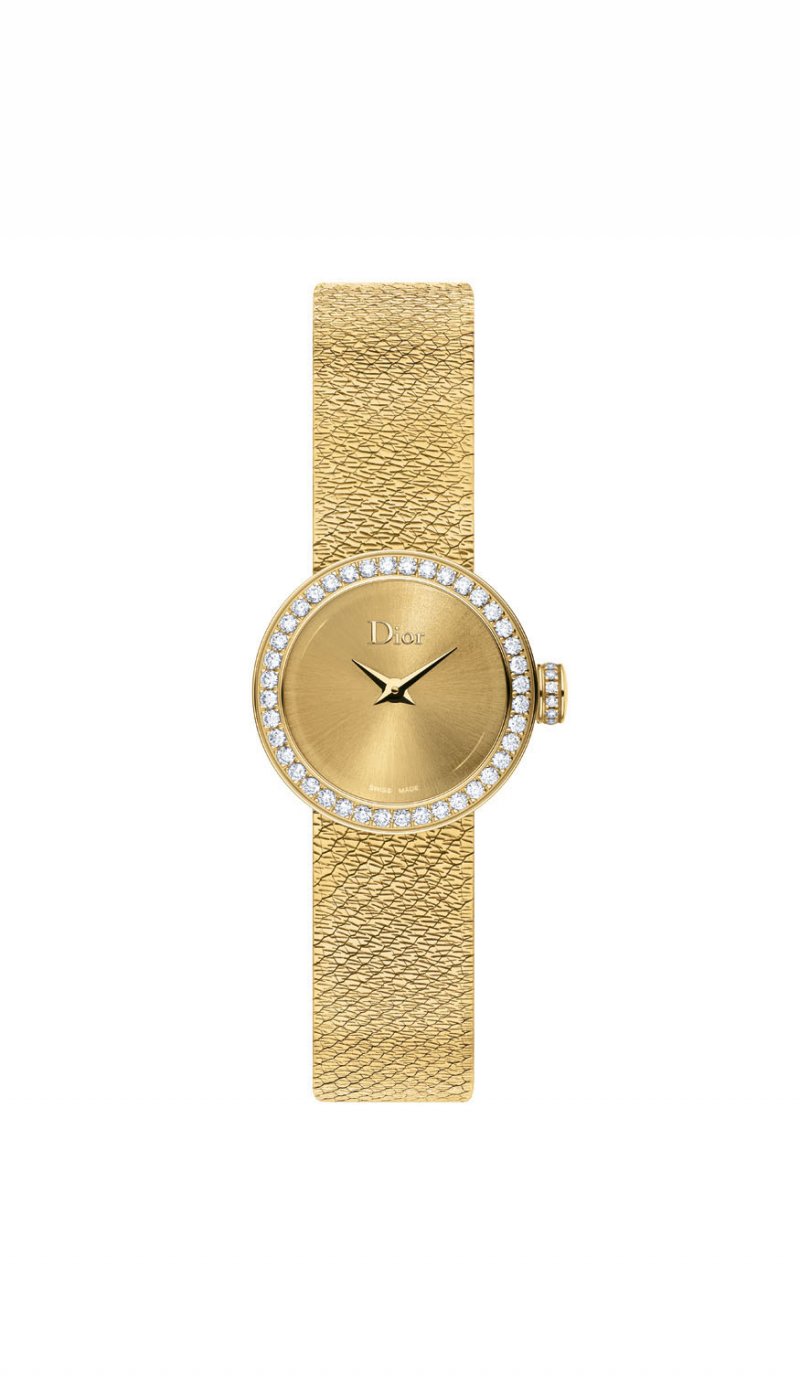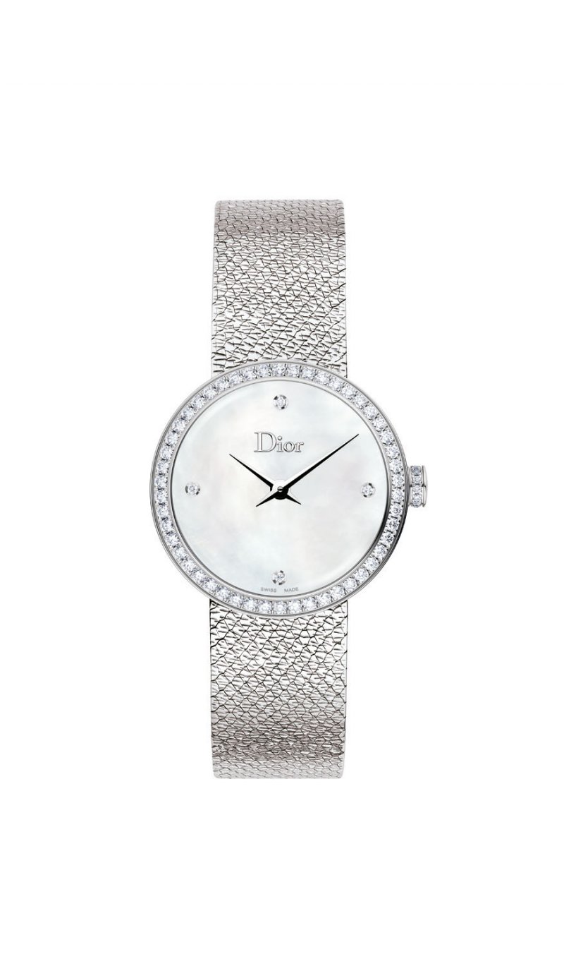 Crafted in the Dior Ateliers at La Chaux-de-Fonds, La D de Dior Satine transforms a goldsmith’s technique from the Renaissance into a precious time teller. The Milanese mesh is delicately woven with thousands of gold and steel threads entangled in a sparkling web like a beautifully embroidered haute couture fabric. This watch is rendered more feminine than it already is with a diamond-set bezel and crown, as well as a white or a pink mother-of-pearl dial that captures the light.