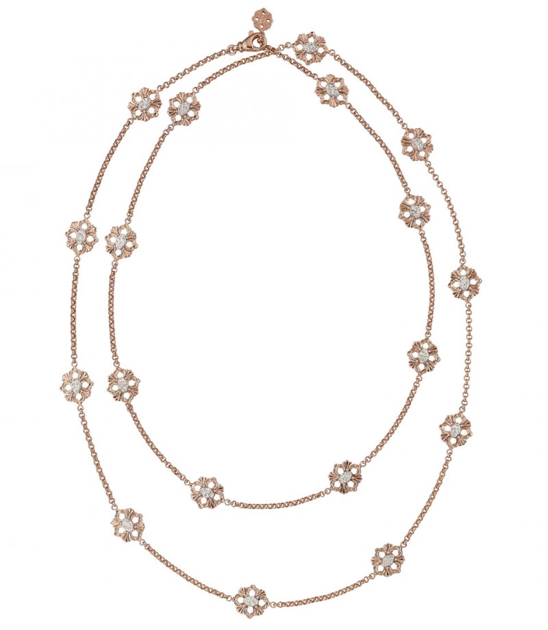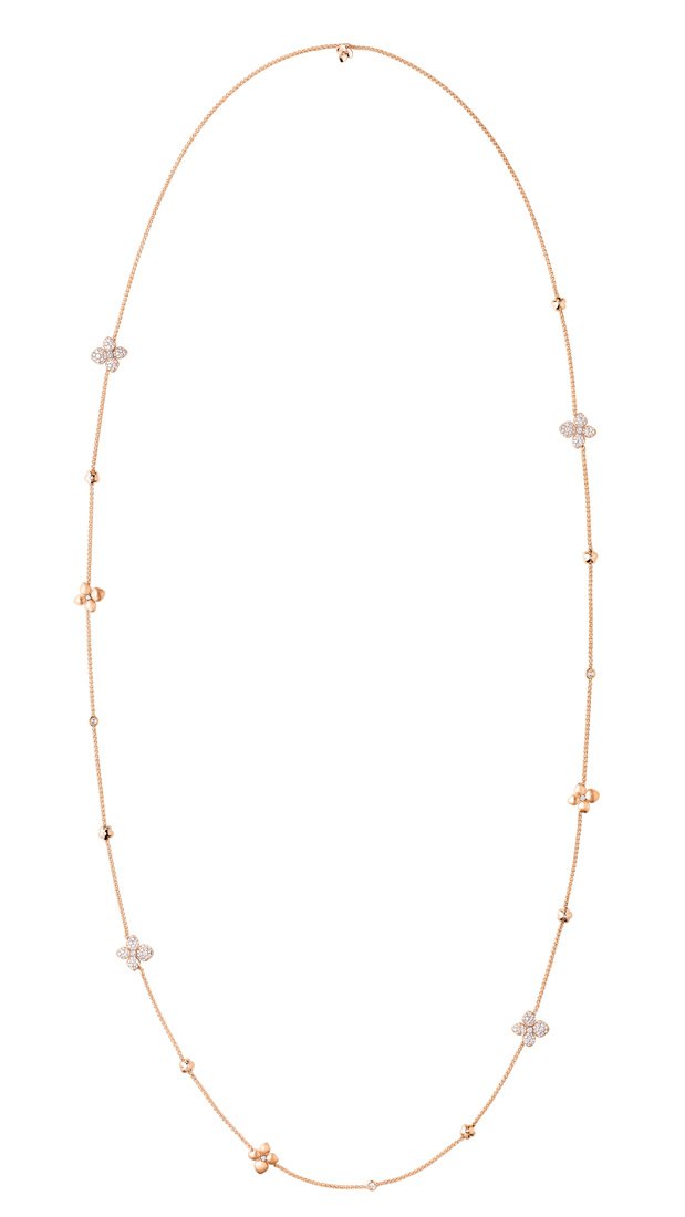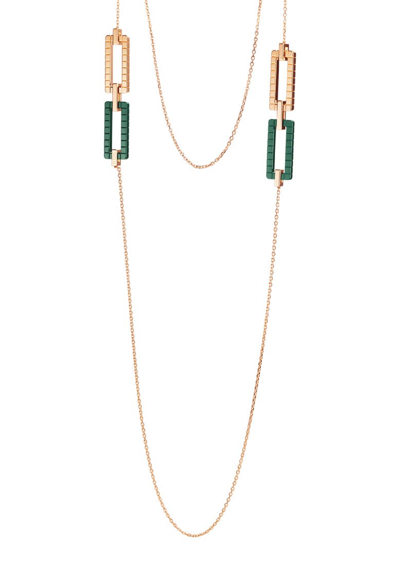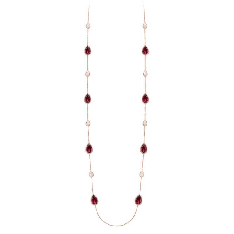 Multi-motif long necklaces consist of a fine chain that features the repetition of the same motif in the same size or in various sizes. Whether the design you choose comes in diamond-set gold or high in colors, you will never regret your choice thanks to the versatility of the piece. In fact, a sautoir can easily take you from day to night, and it goes as well with a daily look as with a low cut evening dress. Concerning the ways to wear it, there are so many! You can first wear it like a short necklace, layer it with a choker, wear it backward if your dress has a low-cut back or wrap it twice around your neck for additional style.