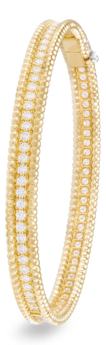 In a design that highlights the beauty of hard stones and the sparkle of diamonds, the new Perlée additions reinterprets the Maison’s Between-the-Finger RingTM concept in the shape of bracelets that speak to the most modern of women. Three new bracelets use diamonds and cabochons of hard stones on an open shank.