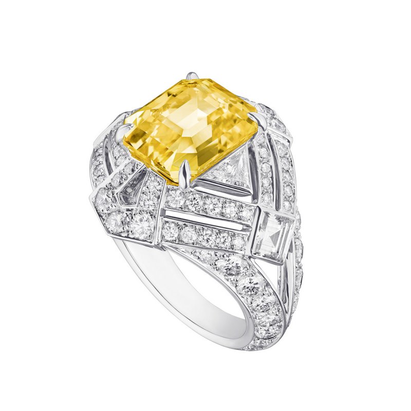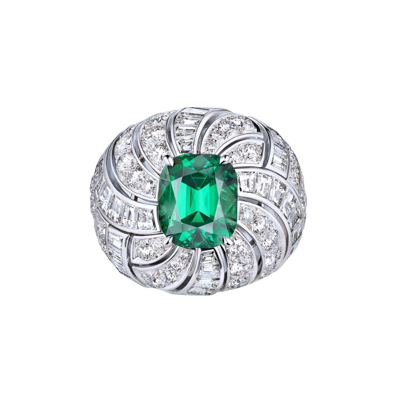Every piece of this collection is a work of art that highlights the majestic beauty of a colorful center stone by surrounding it with sparkling diamonds. As a hallmark of Louis Vuitton high jewelry, treasurable stones – such as an exceptional 34.74 carat Paraiba tourmaline and a rare 19.97 carat tsavorite among others – take part in this mesmerizing collection that leaves nothing but Art Deco creativity to the imagination.