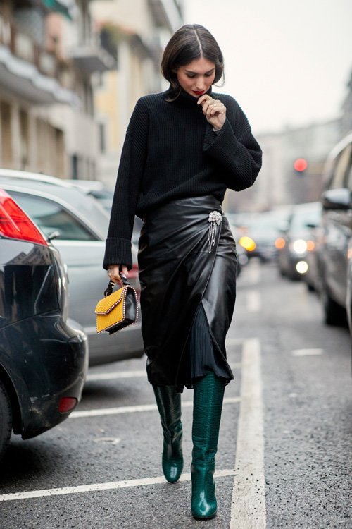 Pegged as one of this season’s most popular trends, these skirts will not go unnoticed should you pair them with cozy knits, good old leather jackets, maxi coats and last but not least, statement boots. Yeah, you heard us, boots. Because let’s face it, not only do you have to protect your feet from the cold, they actually look incredibly good paired with midi skirts!