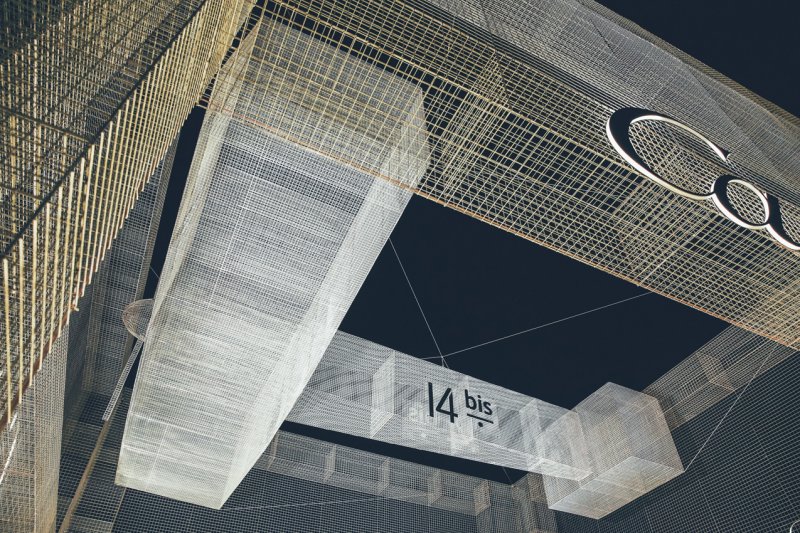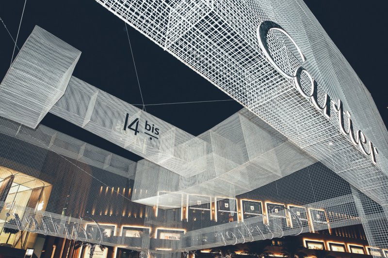 The exhibition tells the story of this watch through photographs of the aviator and his accomplishments in an immersive room, while the history of Santos watches from the Cartier Collections is showcased in another space. However, the center-piece of the exhibition would be the multi-sensorial experience embodied by Santos Dumont’s famed Demoiselle airplane replica suspended in the heart of Cartier’s wire mesh structure.