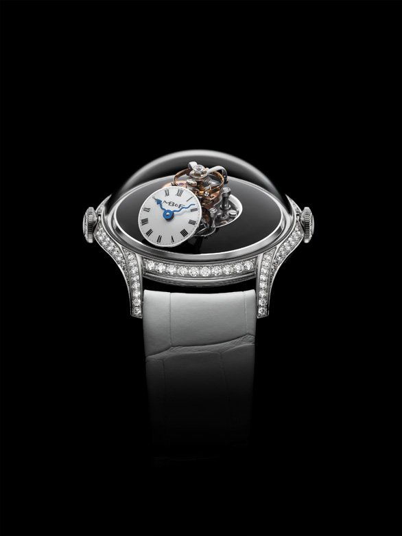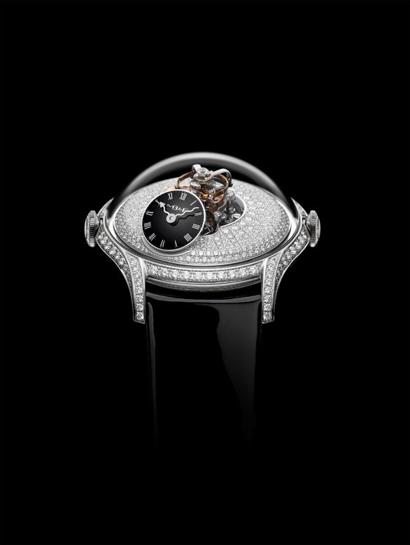 With this vision in mind, this timepiece that defies all conventions was crafted in three editions – one with a black lacquer dial paired with case set with brilliant-cut diamonds, one with a dial plate and case both fully set with brilliant-cut diamonds, and one with dial plate and case both fully set with baguette-cut diamonds.